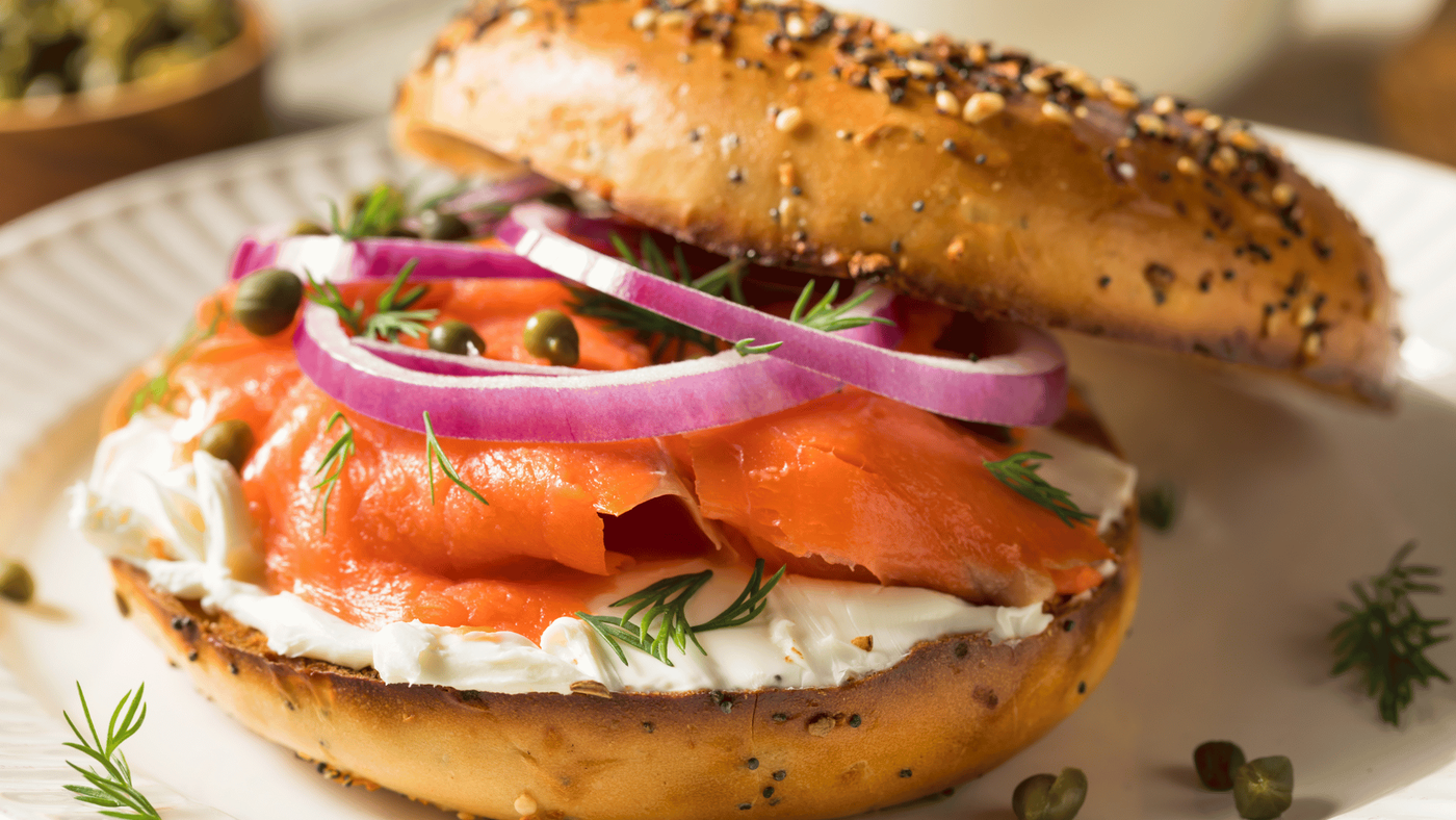 A bagel az egyik legismertebb New York-i reggeli étel, gyakran krémsajttal és különféle feltétekkel, például lox (füstölt lazac) és kaporral.