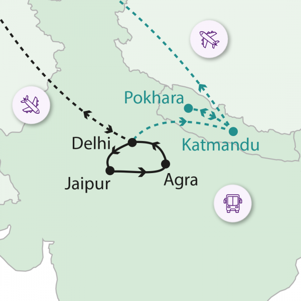 India az ellentétek országa, a csodálatos paloták mellett a nagy szegénységet is látni fogjuk. Nepálban a Himalája csúcsai és az emberek nyugalma különleges hangulatot teremt.