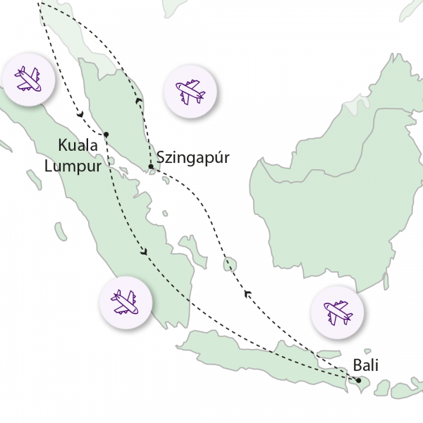 Reggeli majd buszos városnézés. A város északi részén található Batu-barlang, a következő látnivalónk, mely fontos hindu zarándokhely. Ez egy hatalmas mészkőbarlang, melynek bejáratánál áll - a hindu vallásban -, a háború istenének, Lord Murugannak óriási aranyszobra. A barlanghoz és a benne található templomhoz, lépcsősor vezet, ahova a vállalkozó kedvűek fel is mehetnek. (A belépéshez megfelelő öltözet szükséges.) A repülőnk indulásáig szabadidő a városban, majd transzfer a reptérre és elutazás Balira, Denpasarba. Innen rövid autóbuszos utazással jutunk el Ubudba a szállásunkra, ahonnan az elkövetkező napok kirándulásai indulnak (4 éj).