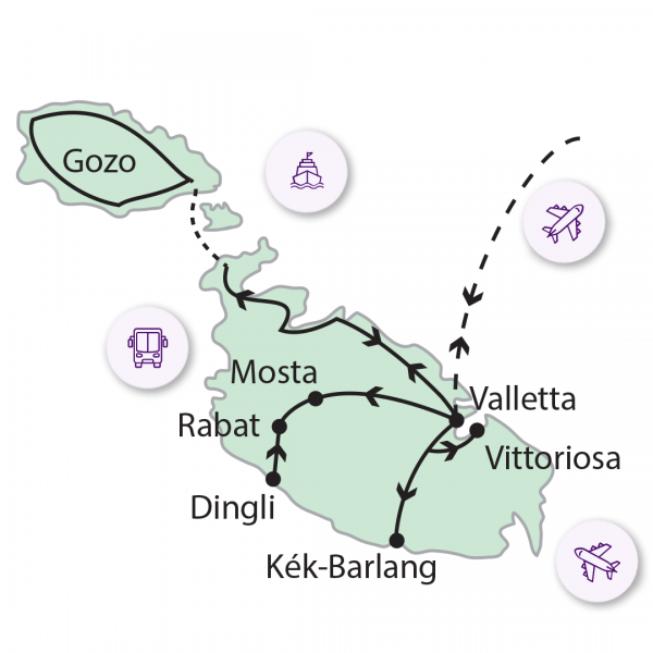 A mai napon is van lehetőség pihenésre, szabad sétára a környéken. Erre a napra Málta másik nagy szigetére kínálunk programot Önöknek. Busszal megyünk a kikötőbe, onnan hajózunk át Gozora. Kikötésünkkor már vár bennünket egy másik busz és azzal nézzük meg a sziget nevezetességeit. Az első különlegesség a több, mint 5.000 éves Ggantija megalitikus templom, mely méltán része az UNESCO Világörökségeinek. Megtekintjük a gozói citadellát is. Az egyik legszebb természeti látványosság volt a ,,Kék ablak", mely egy különleges sziklakapun keresztül nyújtott kitekintést a tengerre, azonban 2017-ben egy hatalmas vihar ledöntötte ezt a sziklaívet. Ettől függetlenül a nap során sok egyedi látnivalót fog bemutatni helyi idegenvezetőnk, mint például a Dwejra-öblöt és a Fungus-sziklát. Visszaúton a hajóról jól láthatjuk a kis Comino szigetet is. Estére érkezünk vissza szállásunkra. Fakultatív Gozo kirándulás hajójeggyel, 1 belépővel: 60 EUR.
