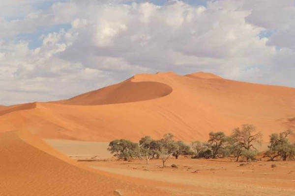 Reggeli után utazás Sossusvlei-be, mely a világ legrégebbi sivatagja, a Namíb-sivatag déli részén található, óriási vörös homokdűnés terület. A Sossusvlei nevet gyakran az egész területre használják, mely egyike Namíbia legfőbb látványosságainak. Az itt található dűnék a világ legmagasabbjai között vannak; legtöbbjük 200 méter feletti. A legmagasabb a 380 métert is eléri, így kapta a ,,Big Daddy" becenevet. Utazás Solitaire-be. Vacsora, Szállás Solitaire-ben.